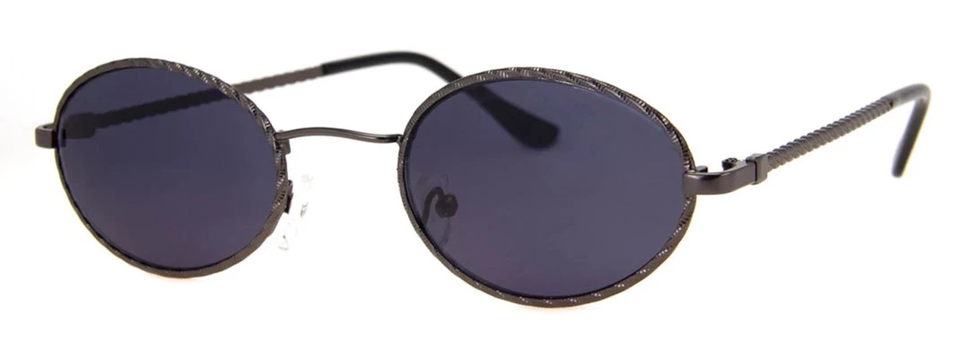 Priceless – gunmetal color, metal rope framed sunglasses with smokey gray lenses.