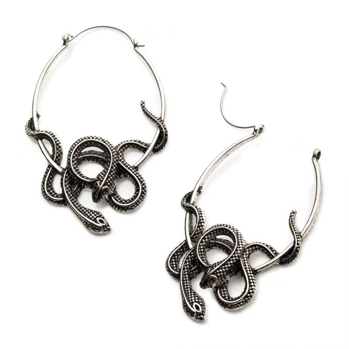 20g Steel with Antiqued Silver Plated Cut Out Snake Plug Hoops.