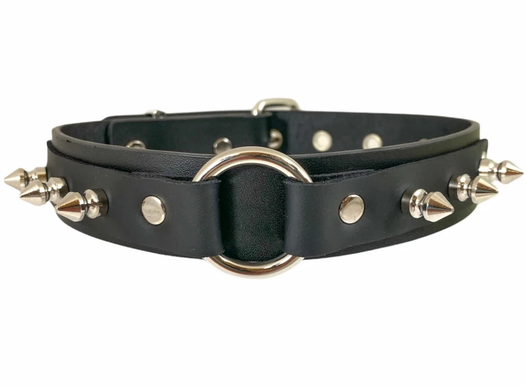 1 1/8″ Black Vegan Leather Spike O-Ring Collar