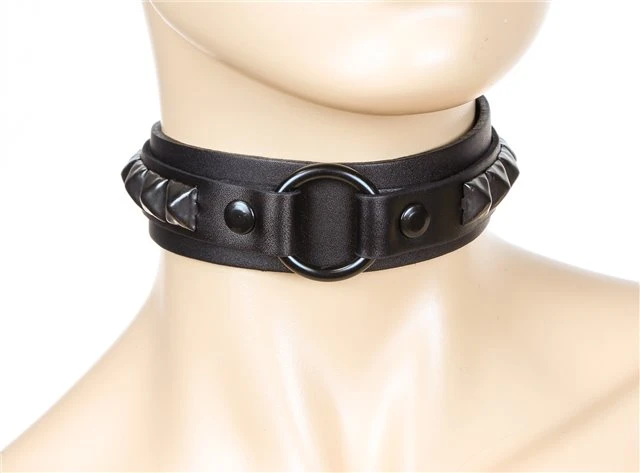 Middle Ring Studded 1 1/8″ Choker in silver or black studs