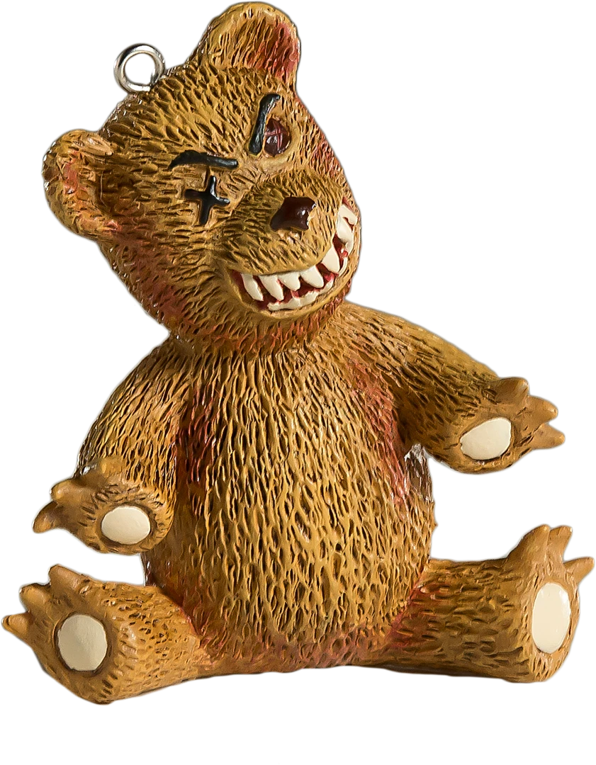 He might seem cute at first… but take a closer look, and you’re in for a nasty surprise! This teddy is anything but cuddly, with his sharp claws, fierce fangs, and missing eye.
