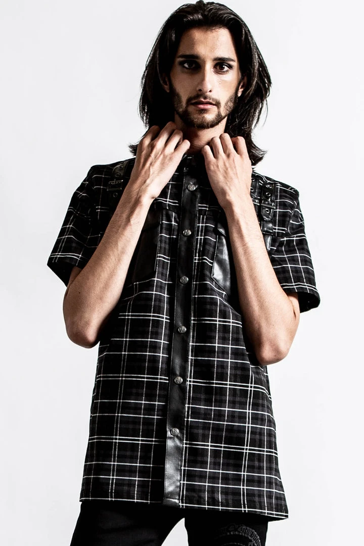 Channel your inner weirdo with our ‘Daze’ button-up shirt. Features a smart button-up front, bold straps with buckles and a tartan design- the perfect mix of smart and magick.