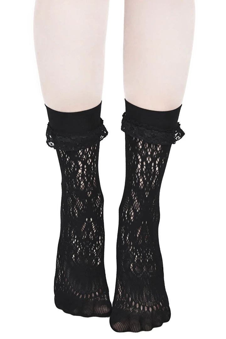 Wanna make yer footwear stand out even more? Or simply add a dash of romance to each and every step? The ‘Amora’ ankle socks are sure to please, silky smooth nylon-blend with just the right amount of detail, finished with a cute bow to the back with a statement cross charm. Dreamy!