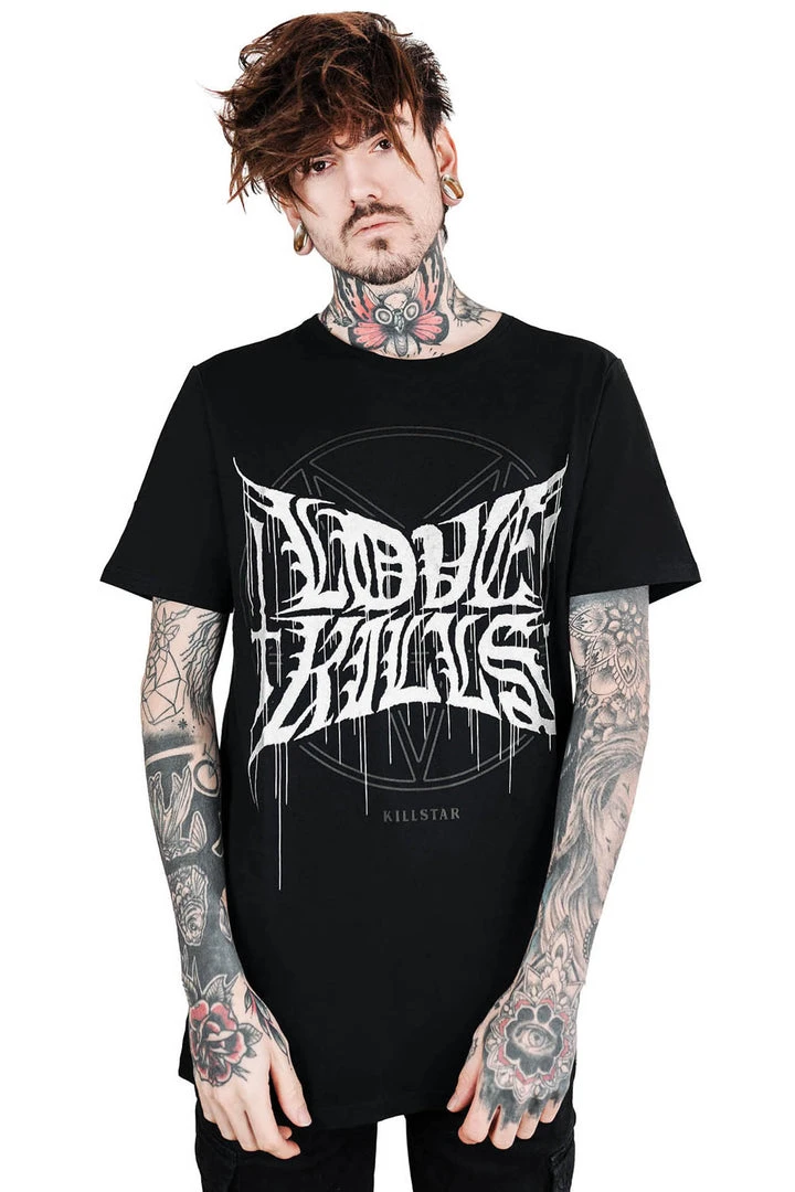 Classic fit t-shirt with some extra length – in a superior cotton jersey with a bold statement print + flock accent.