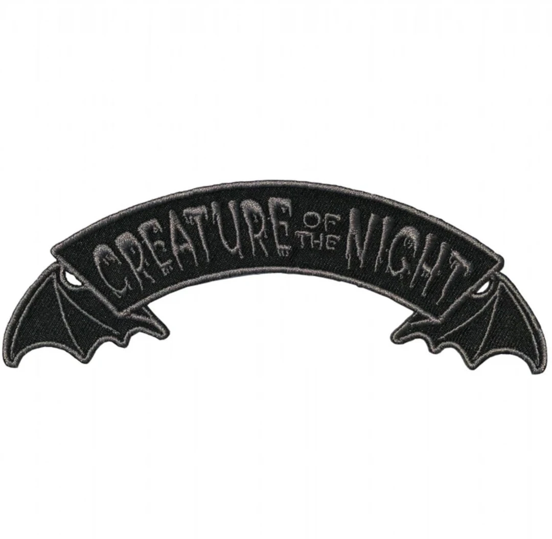 Kreepsville 666 creature of the night arch patch, embroidered iron on patch, size approx 5.25 in wide x 2 in high 13.5 cm w x 5 cm h.