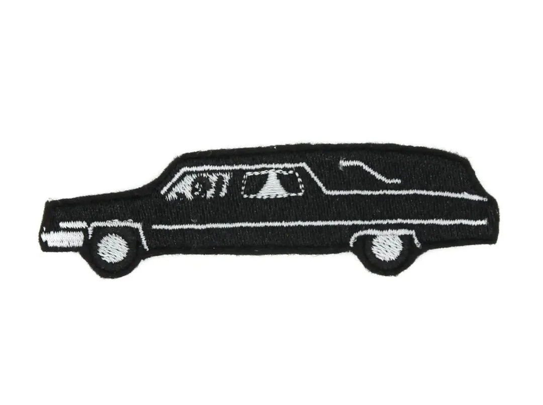 Black Funeral Hearse Car Iron On Embroidered Patch