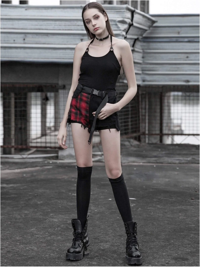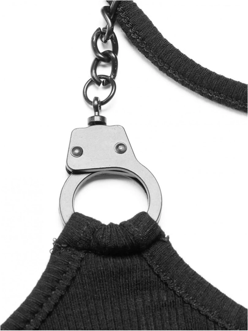 Sin City Top by Punk Rave with handcuff accents and ties around the neck.