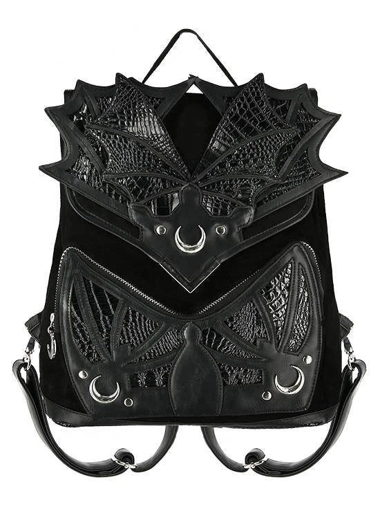 Gothic, black backpack with bat wings and dragon leather.