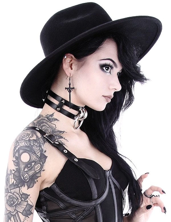 Made of vegan leather, adjustable collar with metal ring decoration. It will turn up every boring look into a badass one! Perfect accessory for classic goth girls or nugoth styles lovers.