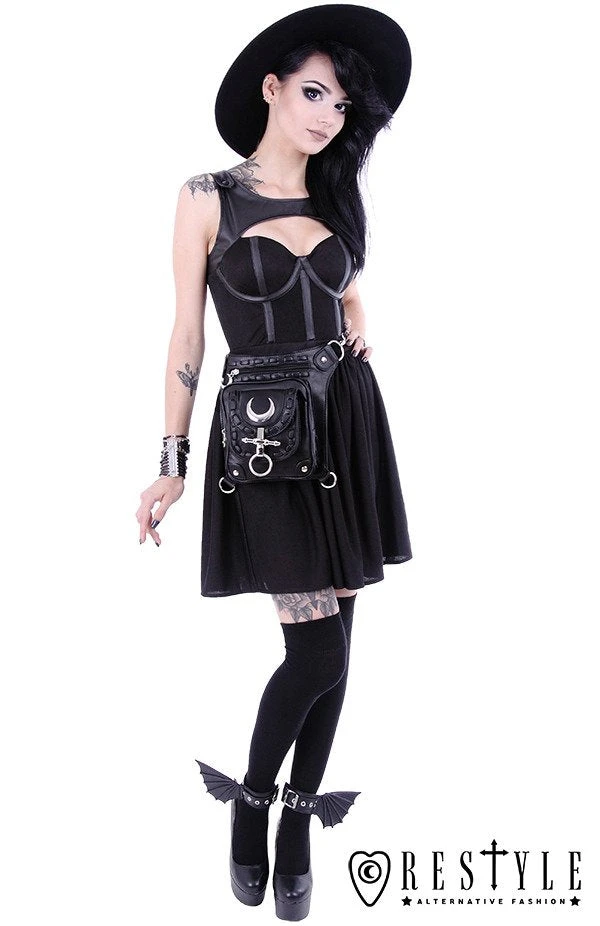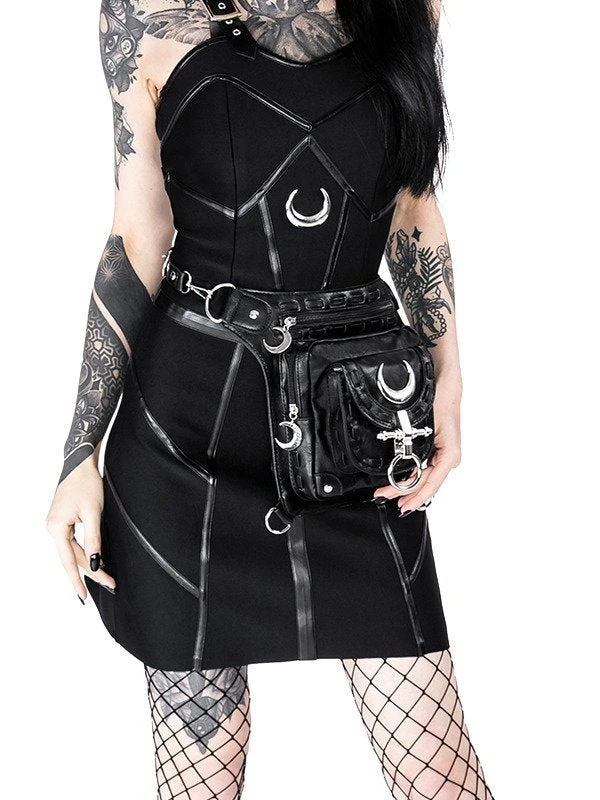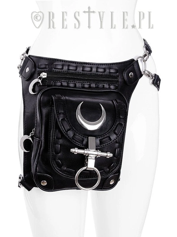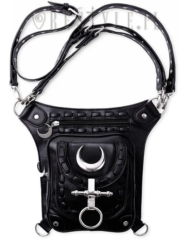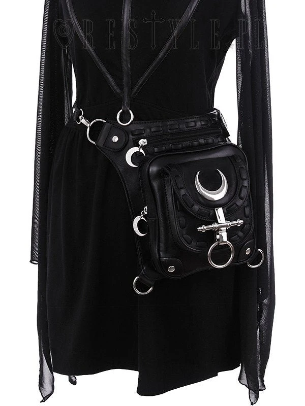 Black hip bag with pockets, pocket belt, moon bag, gothic utility belt”LUNAR HOLSTER BAG”