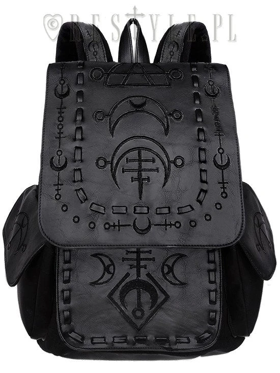 School bag, with pockets “RUNIC MOON BLACK BACKPACK”