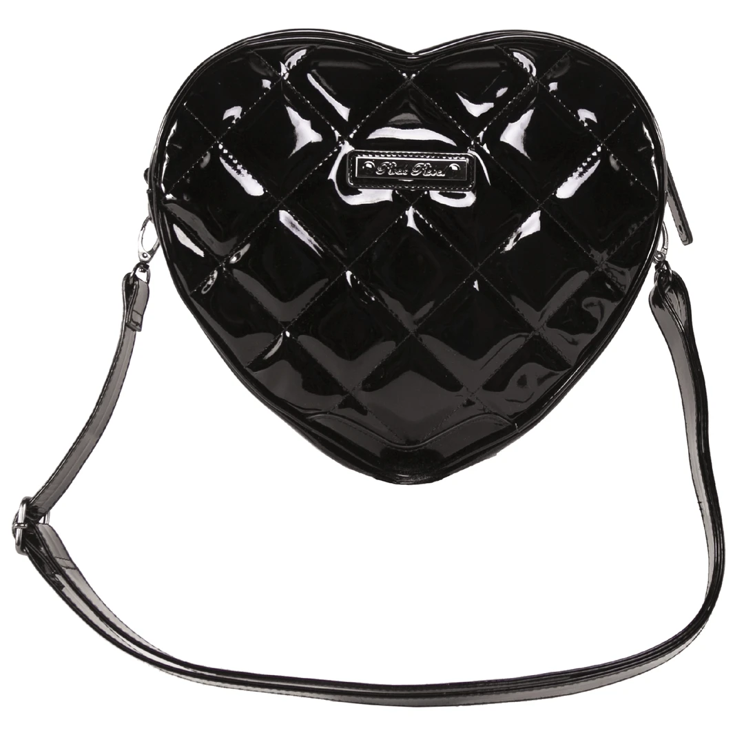 Unique heart-shaped quilted shoulder black bag with bat metal studs.