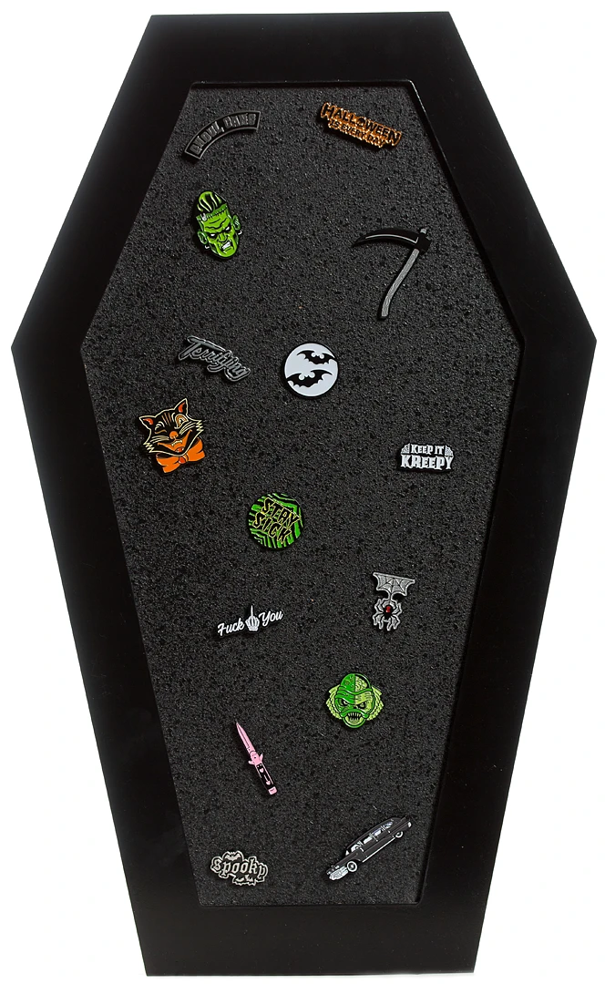 Keep your crypt in deathly order with the Sourpuss Coffin Cork Board! If you’re an organized ghoul (or you’re trying to be), then our ready-to-hang memo board will serve double-duty in your home or office. It’s the perfect, not-too-large size for affixing your notes, memos and to-do lists, plus this black-on-black coffin-shaped board is an easy way to add a bit of spooky fun anywhere you hang it.