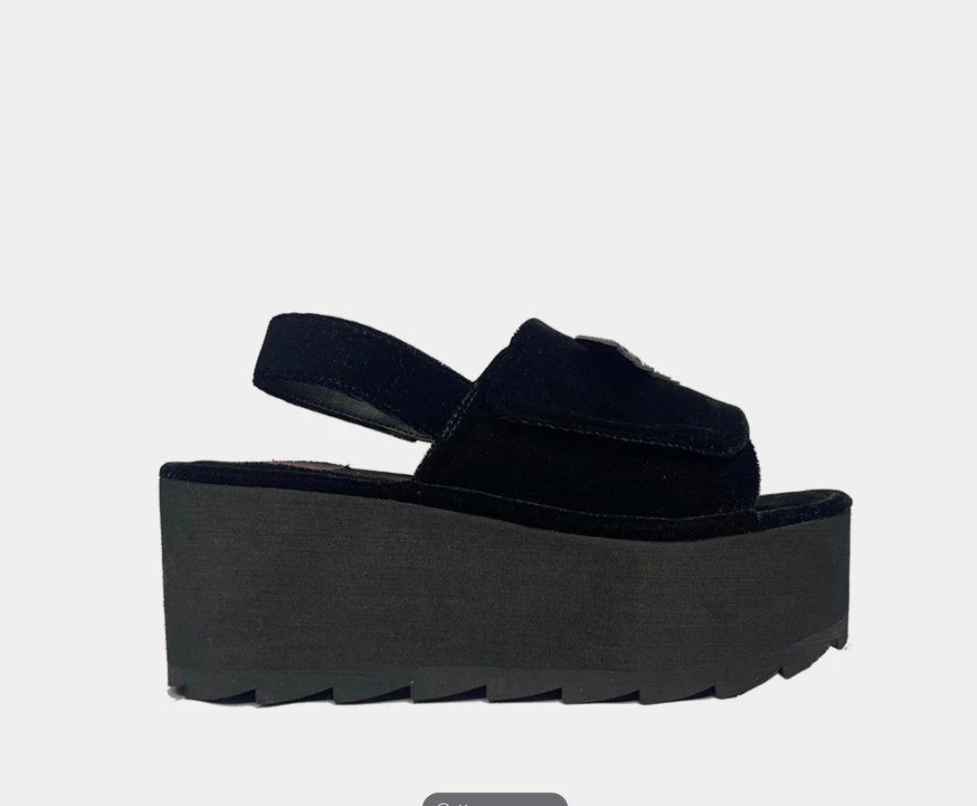 The Lilly Bat Black Velvet platform sandal by Strange Cvlt.
